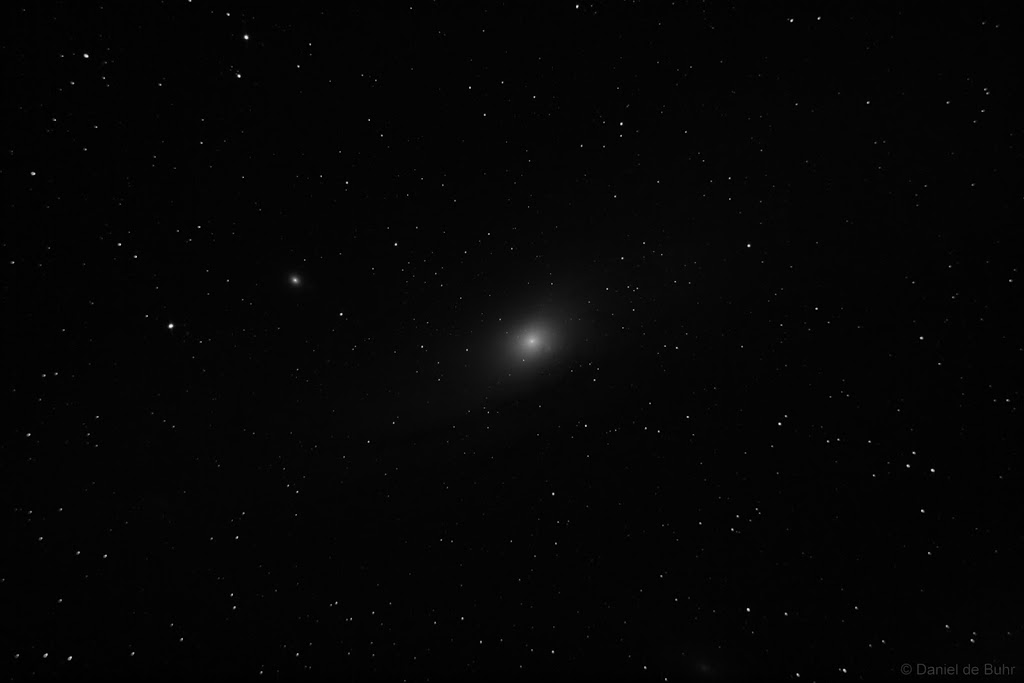 Bei der Bildbearbeitung ist mir dann erst aufgefallen, dass die beiden Bilder überhaupt keine Farbe enthalten. Einige Tests mit der EOS und tatsächlich: Keine Farbe! Ich fummelte an sämtlichen Einstellungen die damit zu tun haben könnten aber den Fehler habe ich nicht lösen können. Erst das Zurücksetzen der Kamera brachte wieder Farbe ins Bild. Schade! Ich hätte den Orionnebel gerne in Farbe abgelichtet. Aber es wird ja noch andere Tage geben!